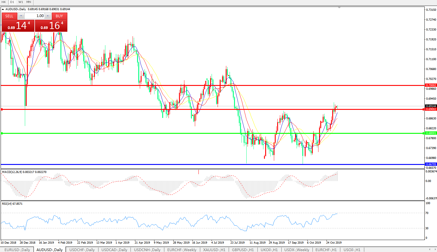 压制位:0.6900 0.7000