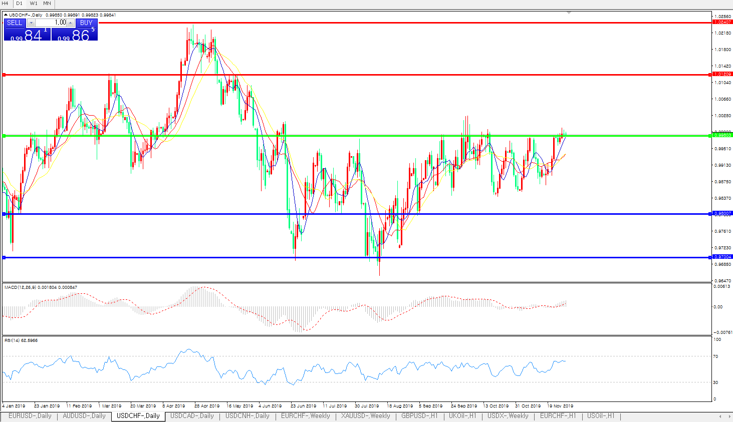 美元兑瑞郎USDCHF 日线图: