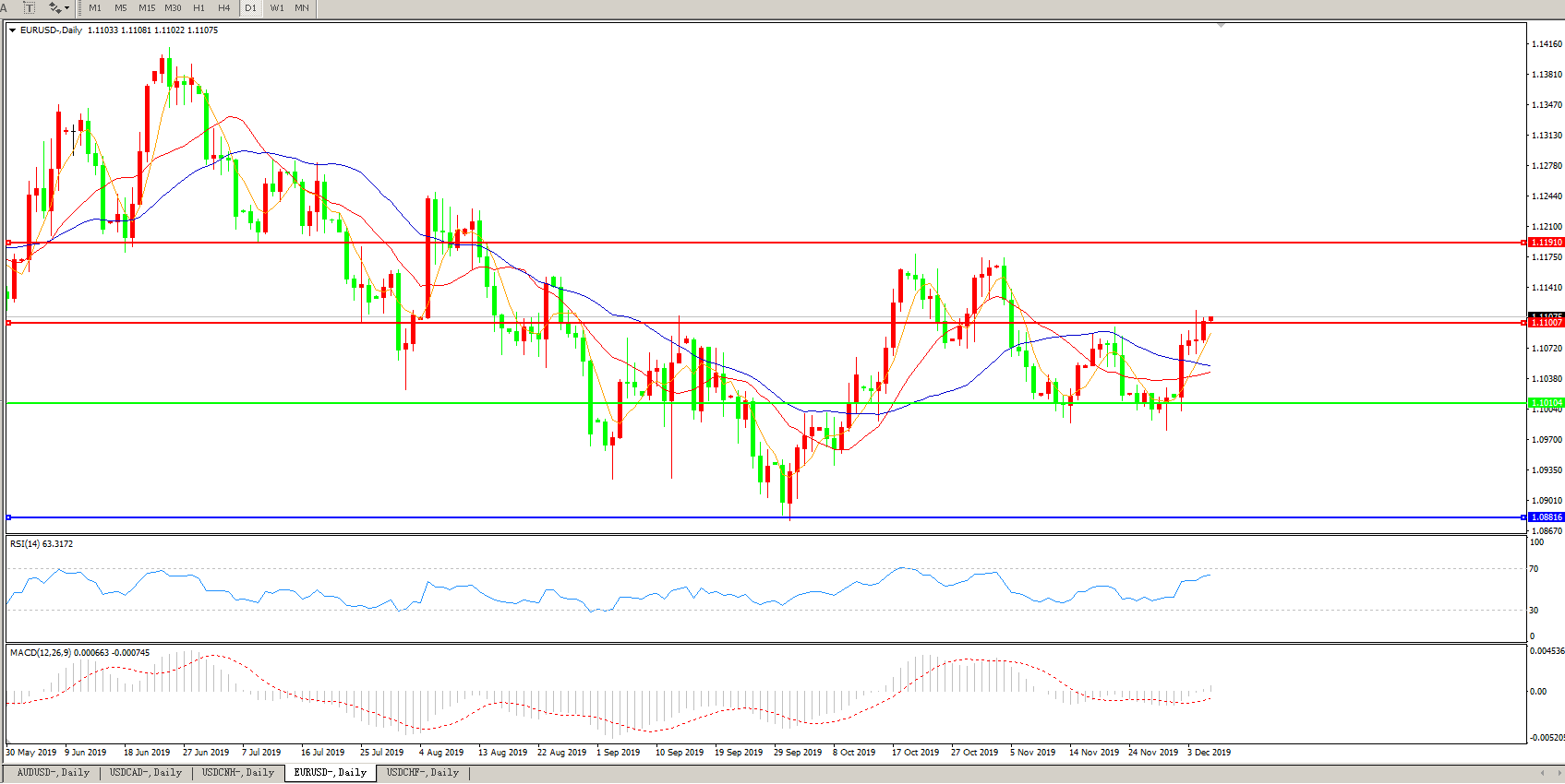 欧元兑美元EURUSD 日线图: