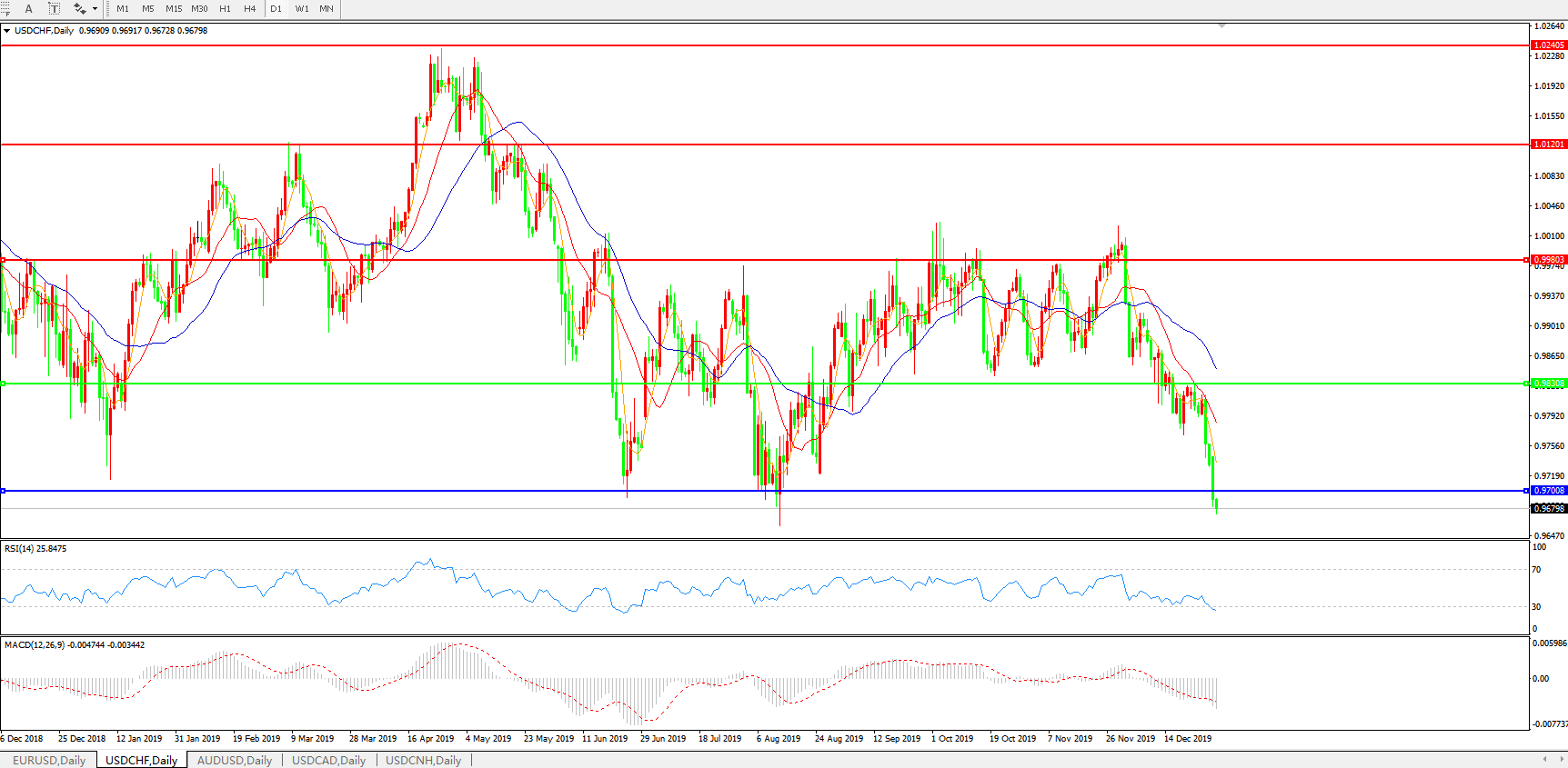 美元兑瑞郎USDCHF 日线图:
