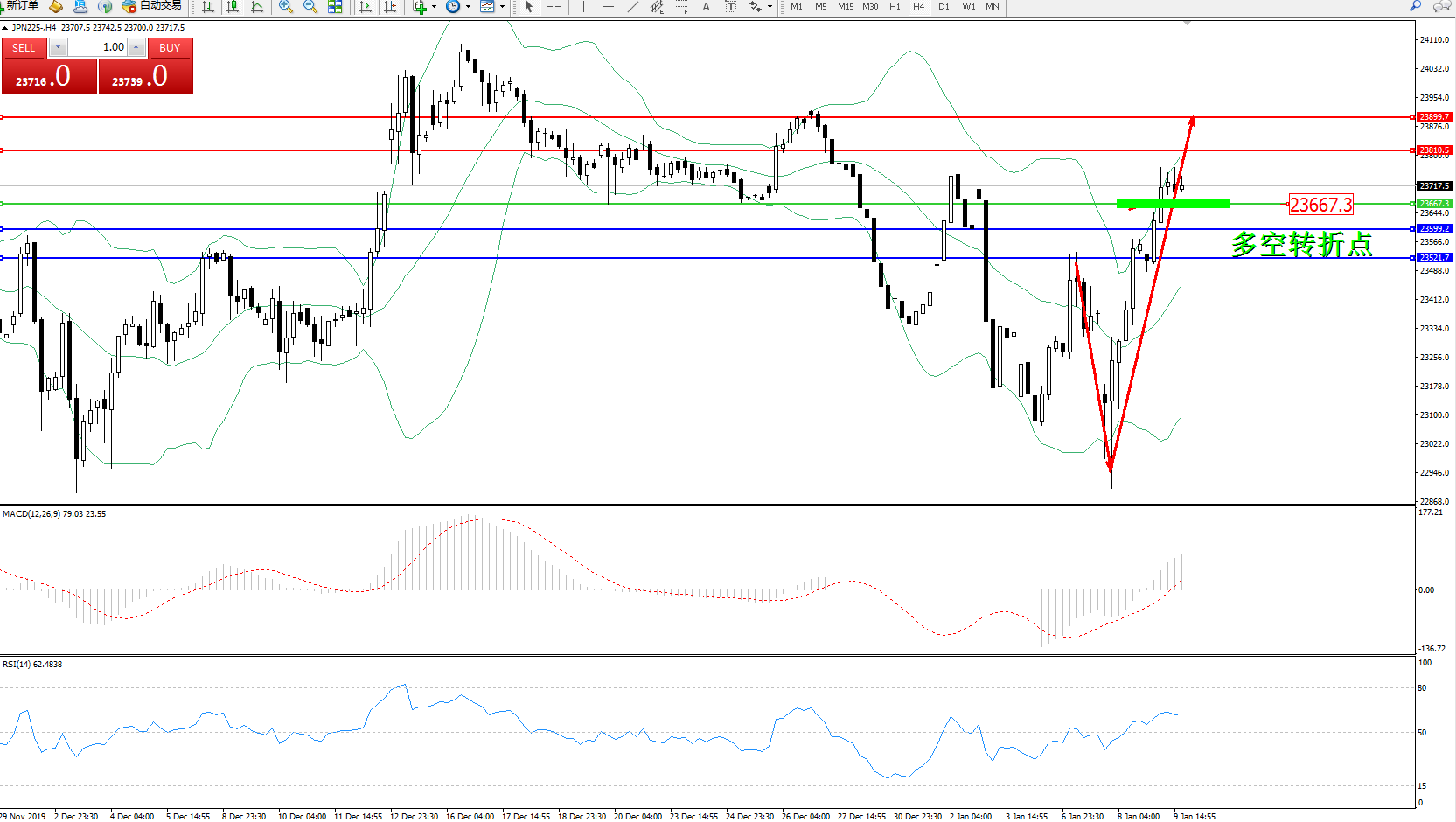 交易策略:23667上方看涨,目标23810、23899