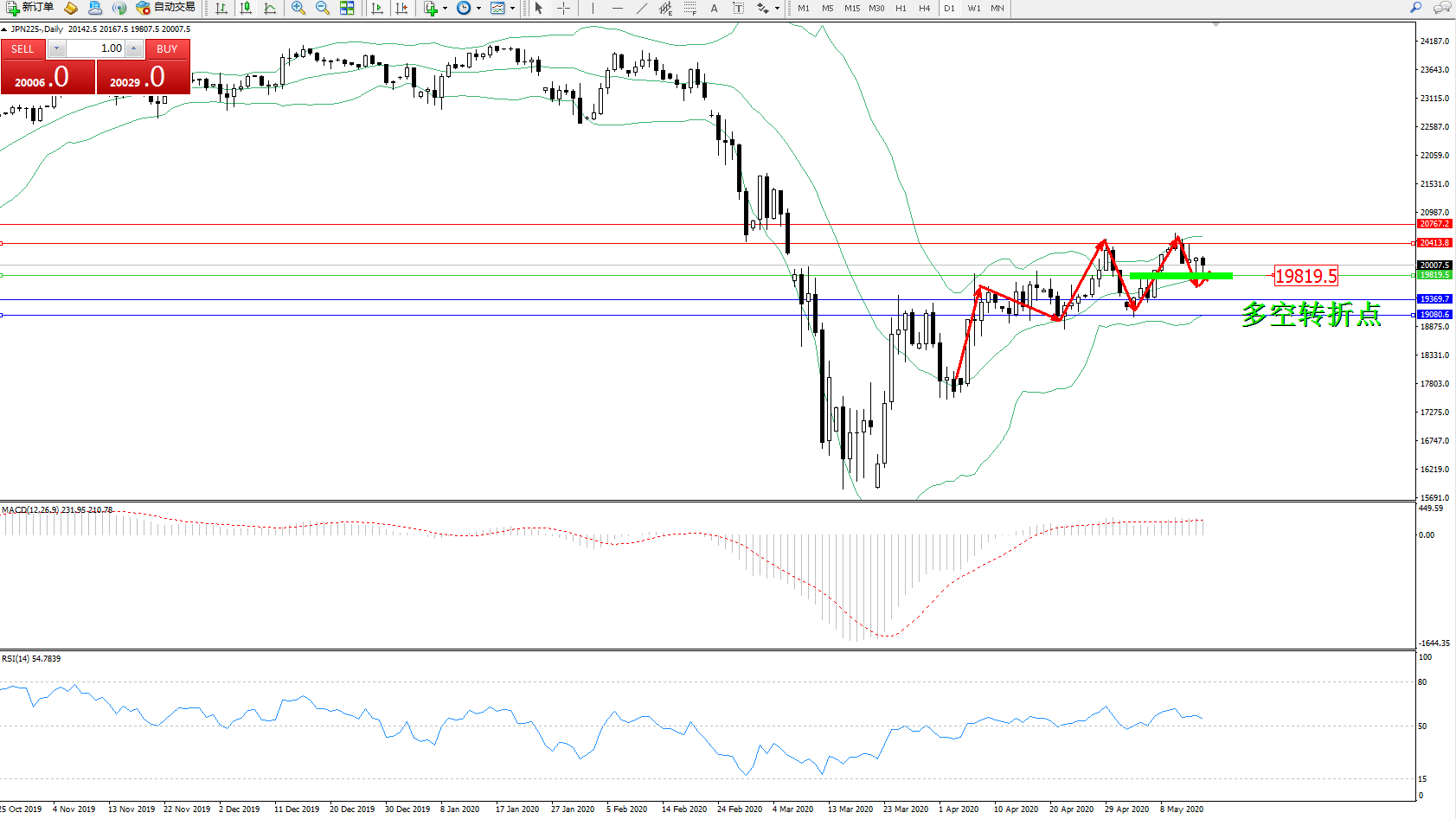 交易策略:19819上方看涨,目标20413、20767