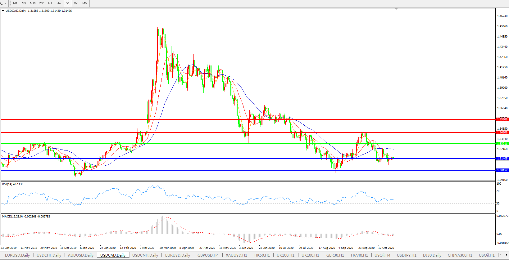 美元兑加元USDCAD    日线图: