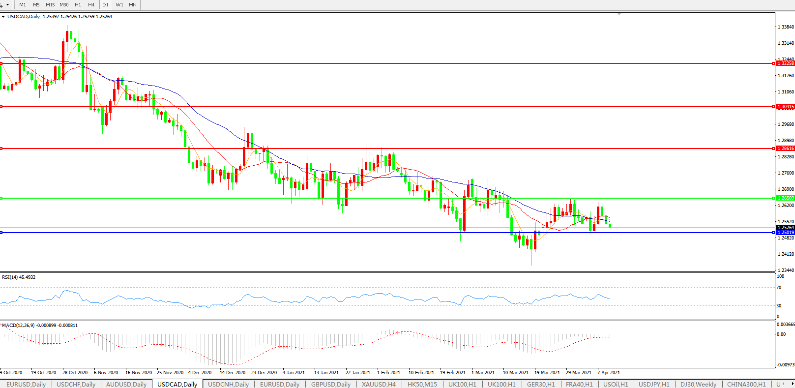美元兑加元USDCAD    日线图: