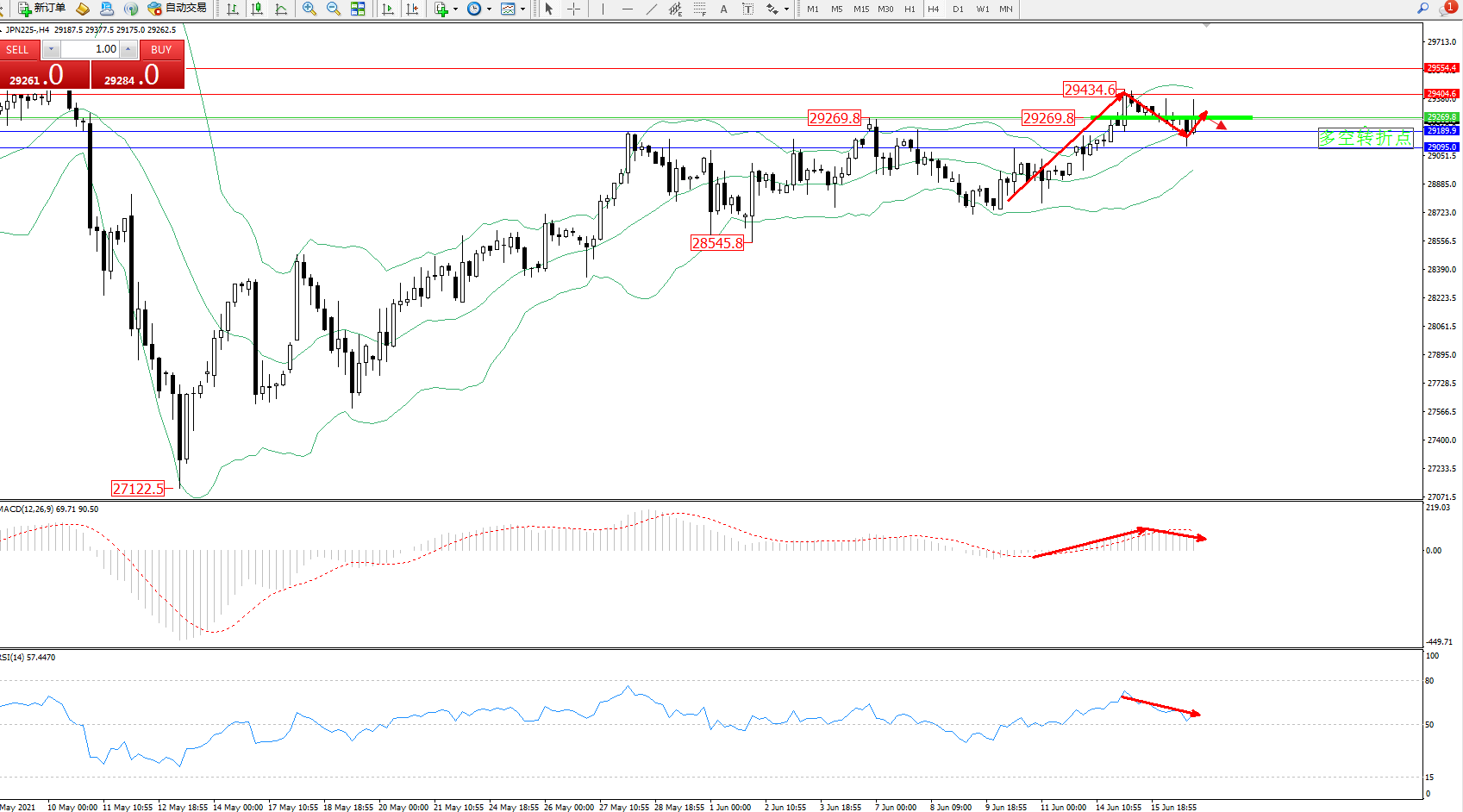 日经指数JPN225——4小时K线图显示: