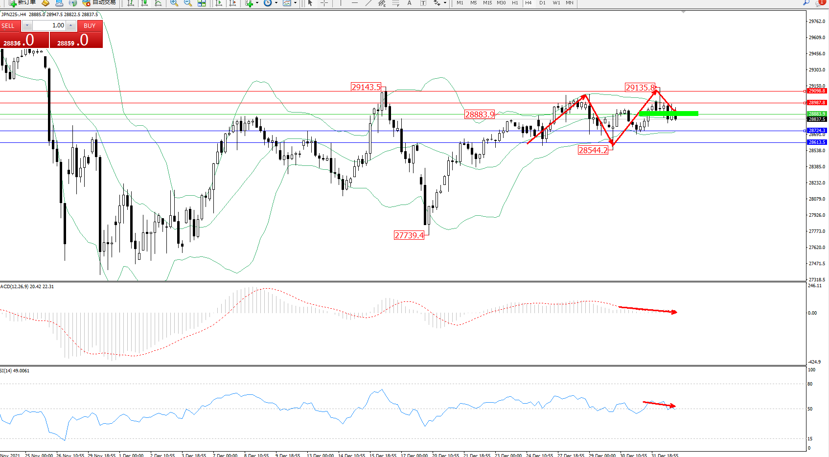 日经指数JPN225——4小时K线图显示: