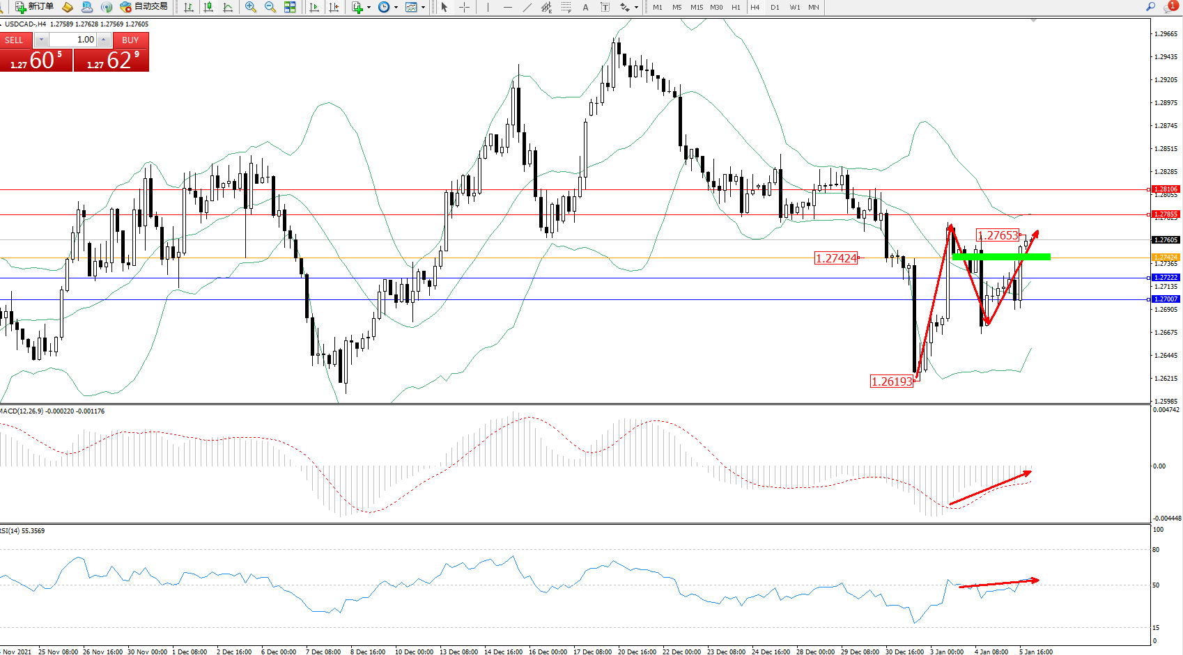 交易策略:1.27424上方看涨,目标1.27855、1.28106