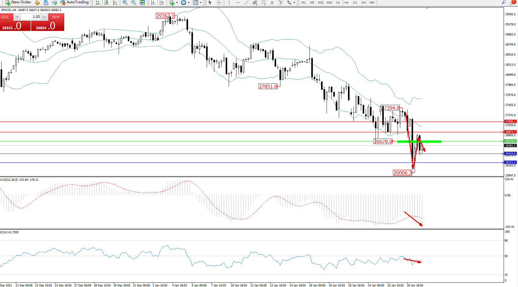 日经指数JPN225——4小时K线图显示: