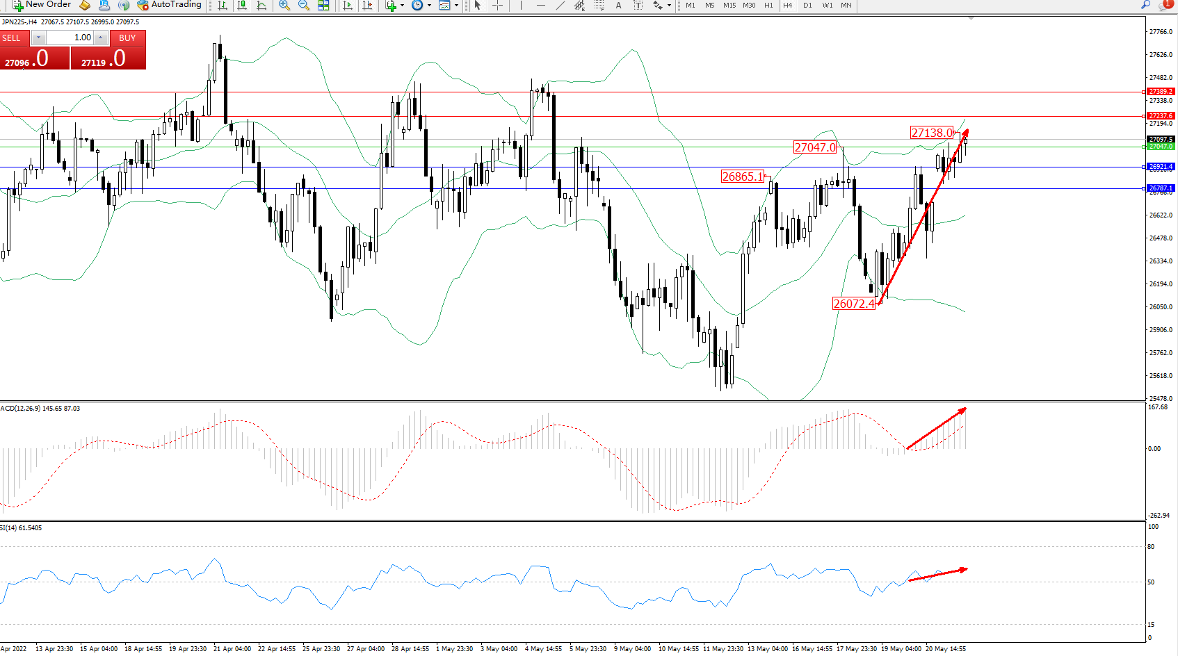 日经指数JPN225——4小时K线图显示: