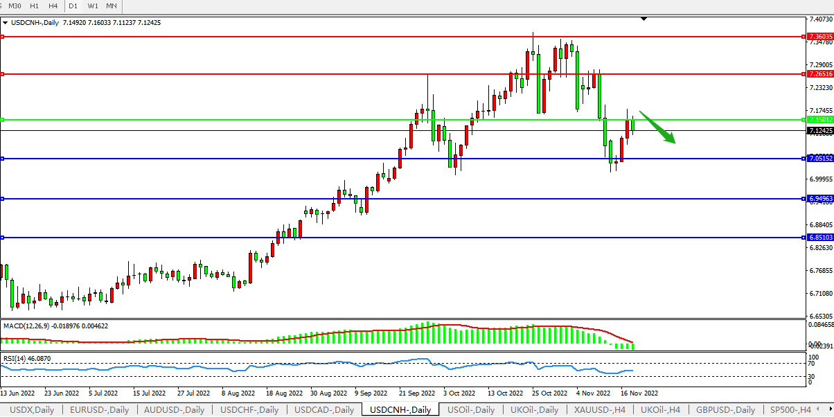 备选策略:在7.1500之下,看跌,目标价位为7.0500、6.9500