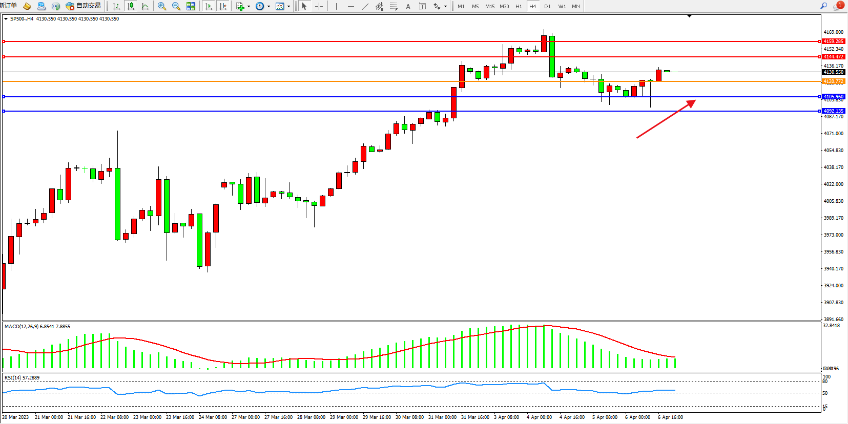 标普SP500——4小时K线图显示: