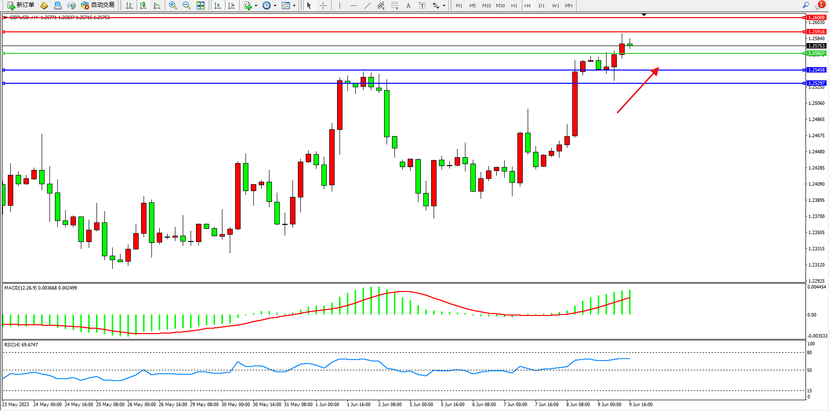 交易策略:1.25657上方看涨,目标1.25918  1.26088