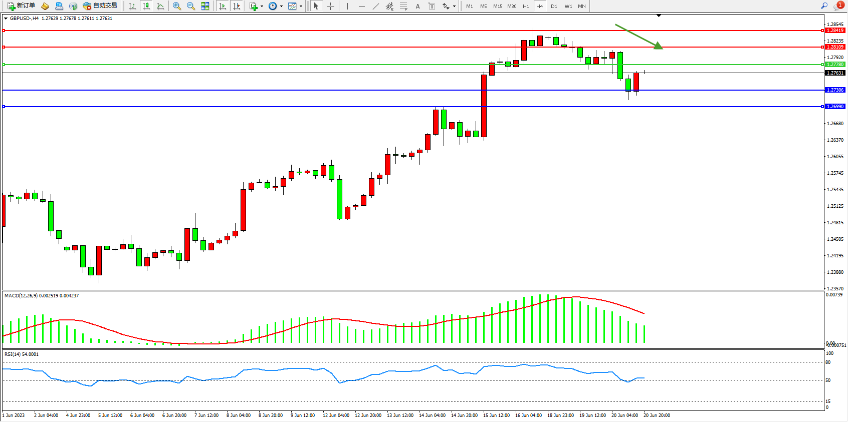 英镑美元GBPUSD ——4小时K线图显示: