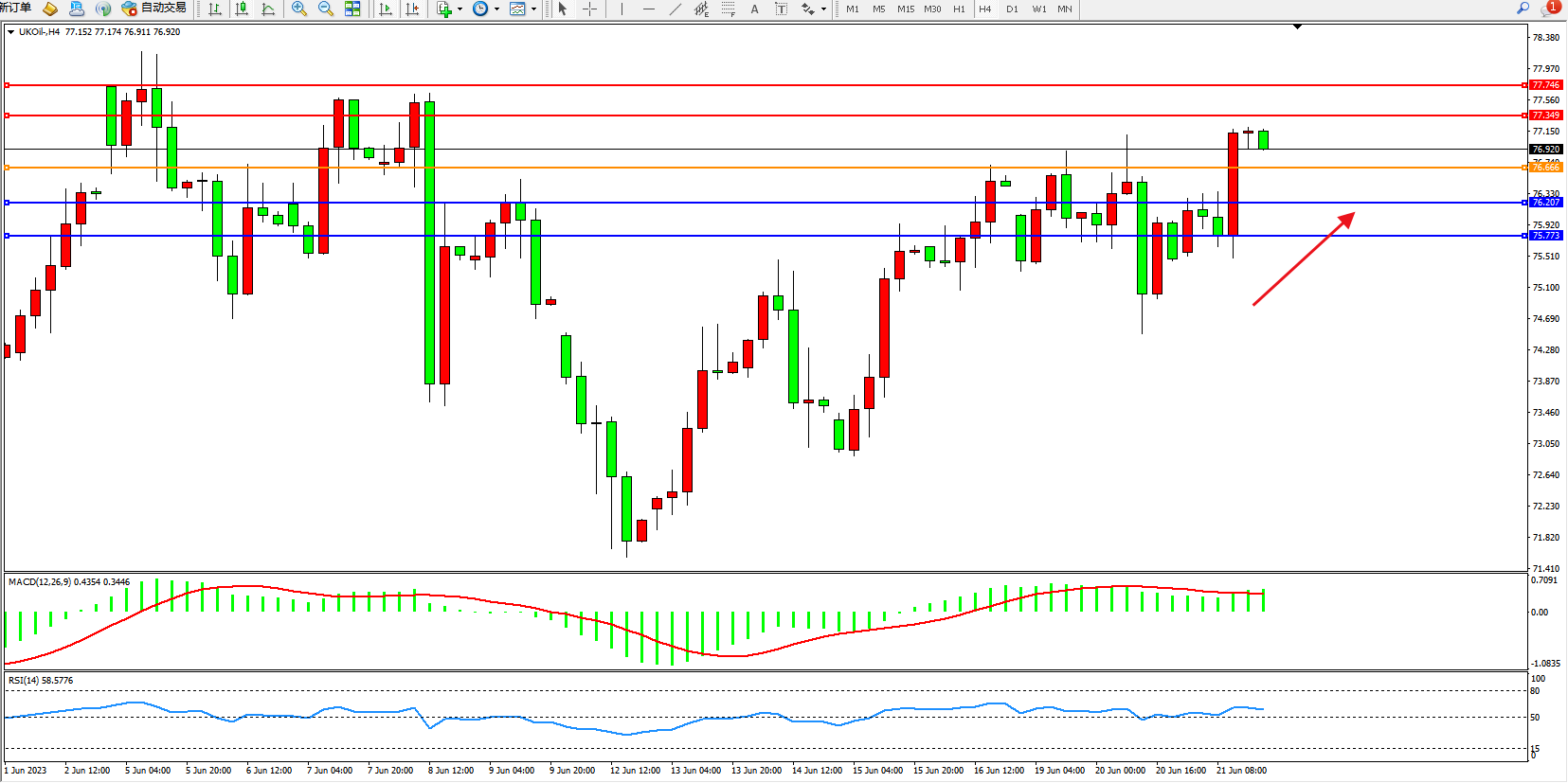 阻力位:77.349 77.746
