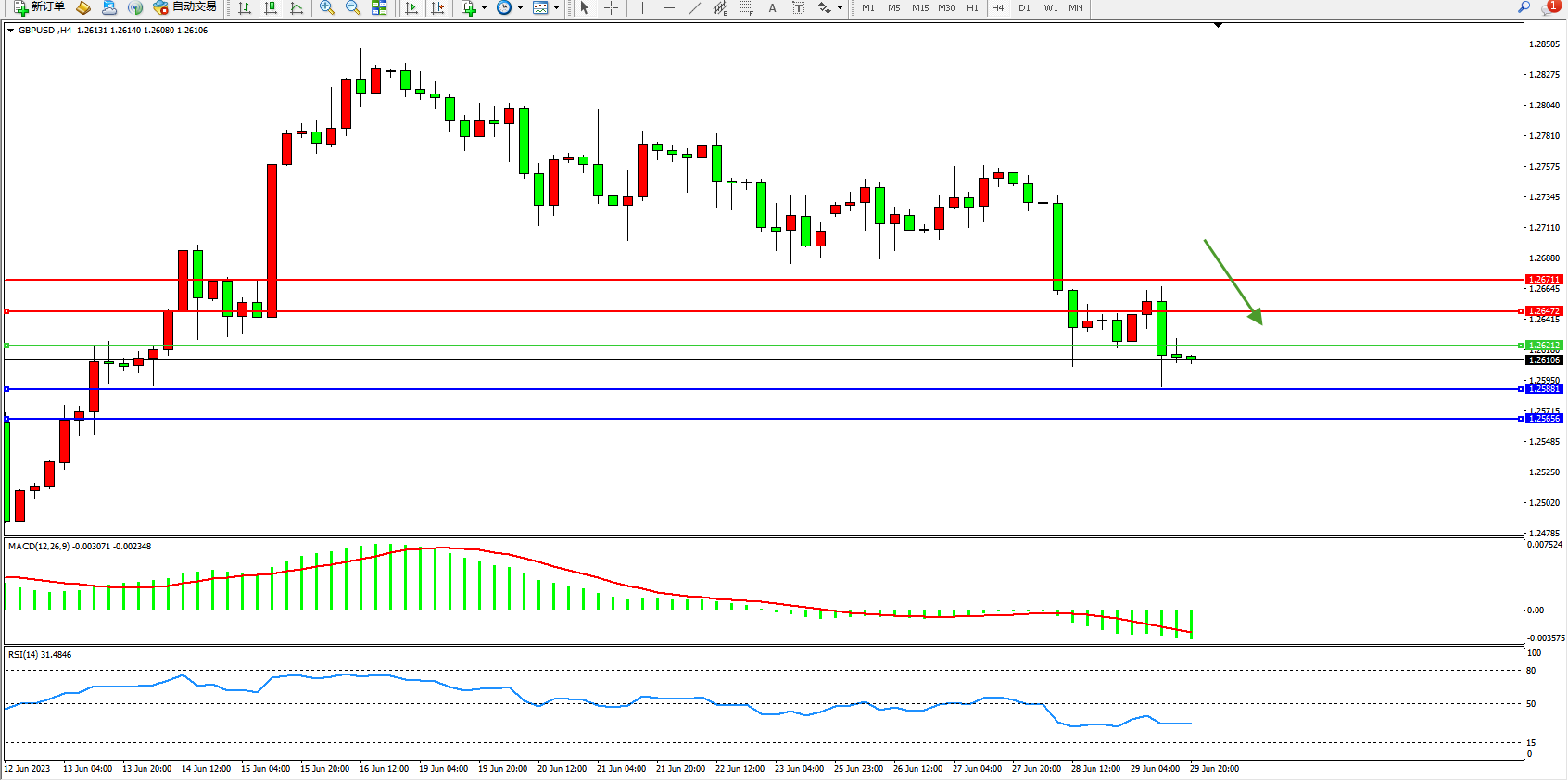 英镑美元GBPUSD ——4小时K线图显示: