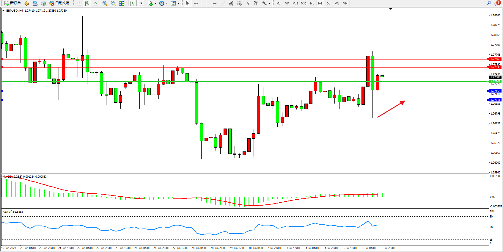 英镑美元GBPUSD ——4小时K线图显示:
