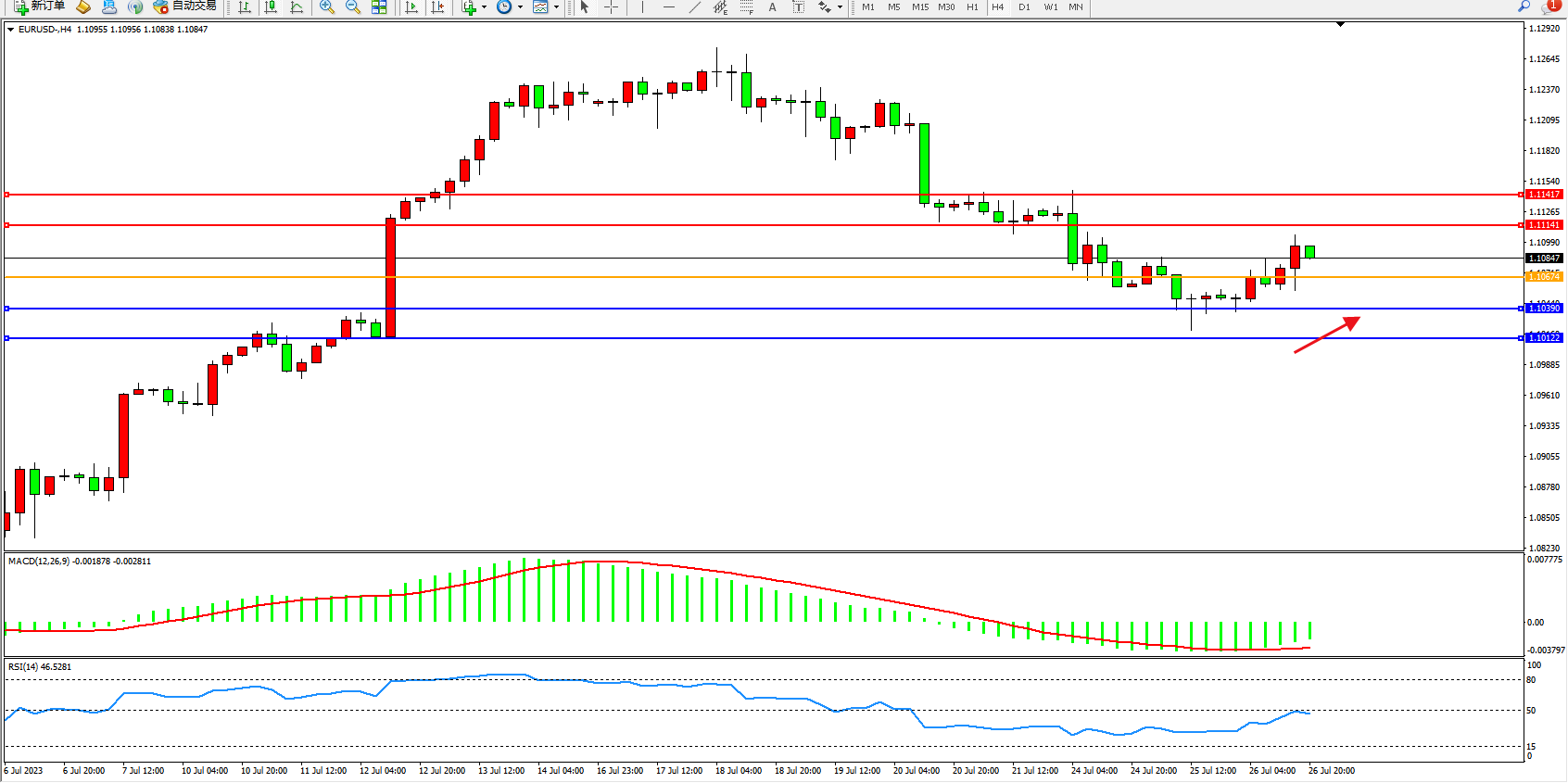交易策略:1.10674上方看涨,目标1.11141  1.11417