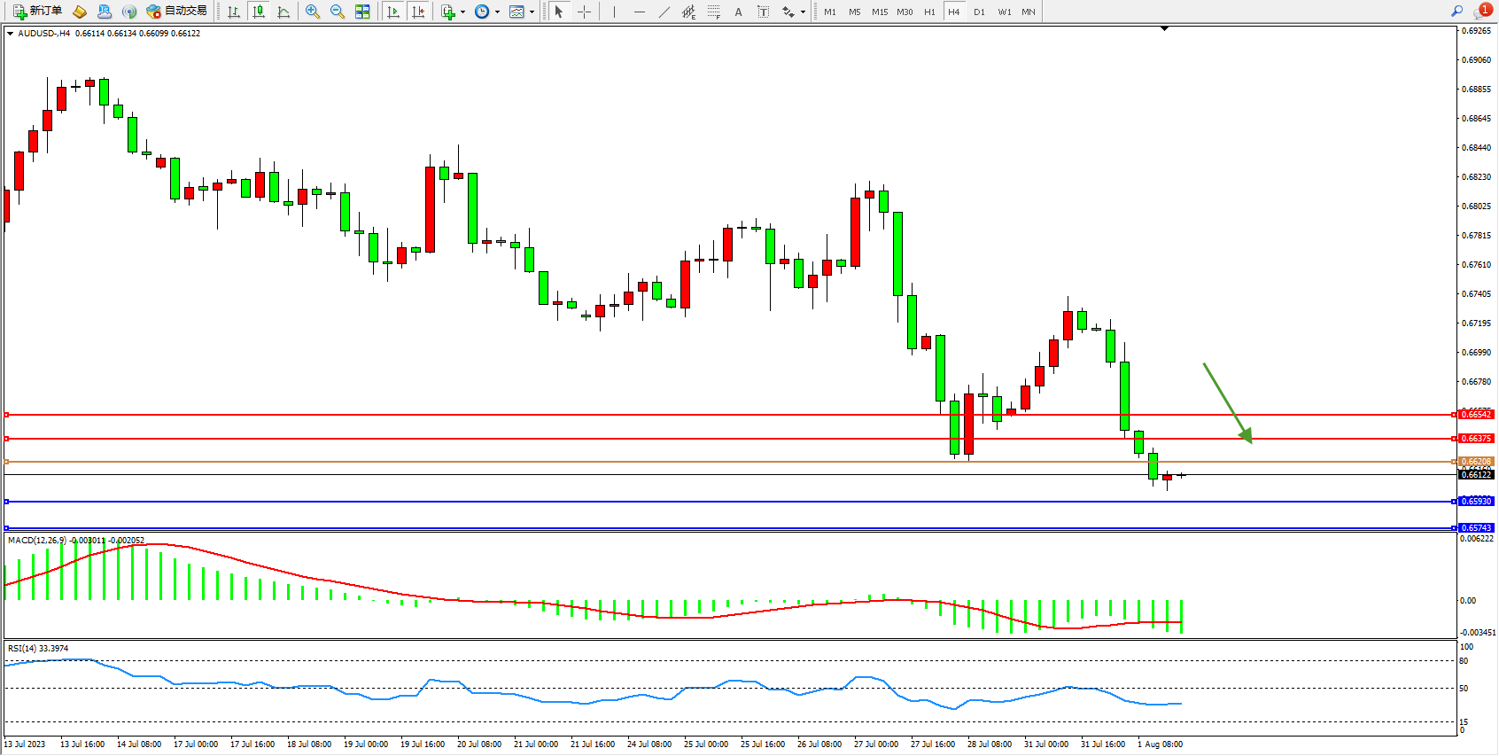 交易策略:0.66208下方看跌,目标0.65930 0.65743