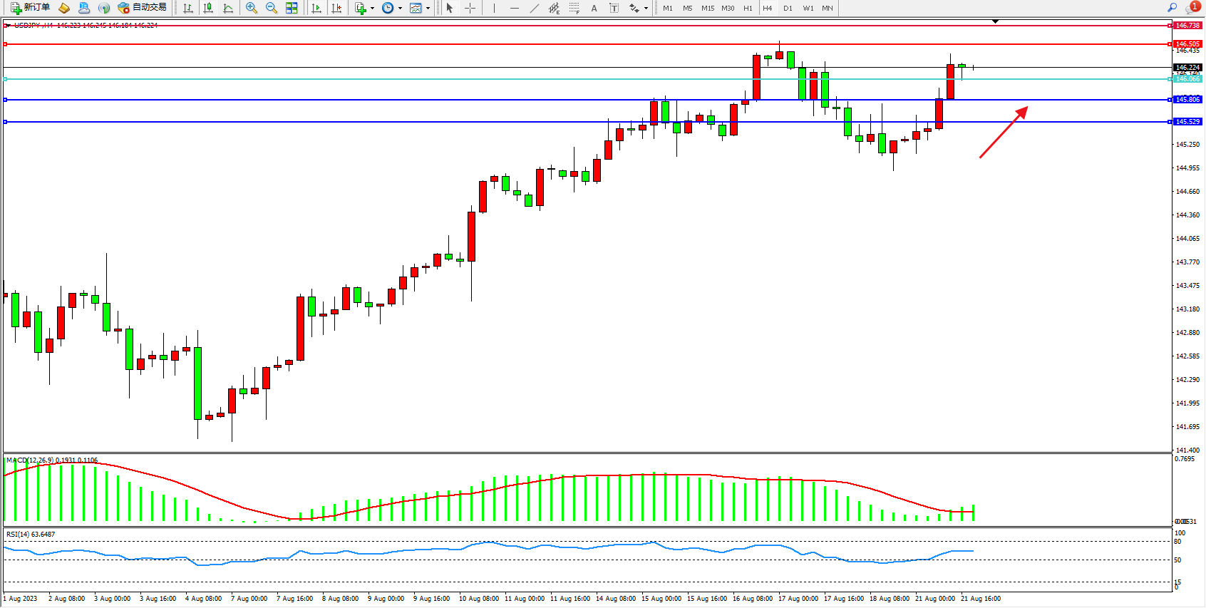 阻力位:146.505 146.739