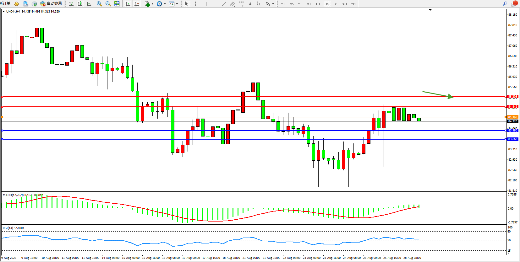备选策略:84.468上方看涨,目标84.842 85.205