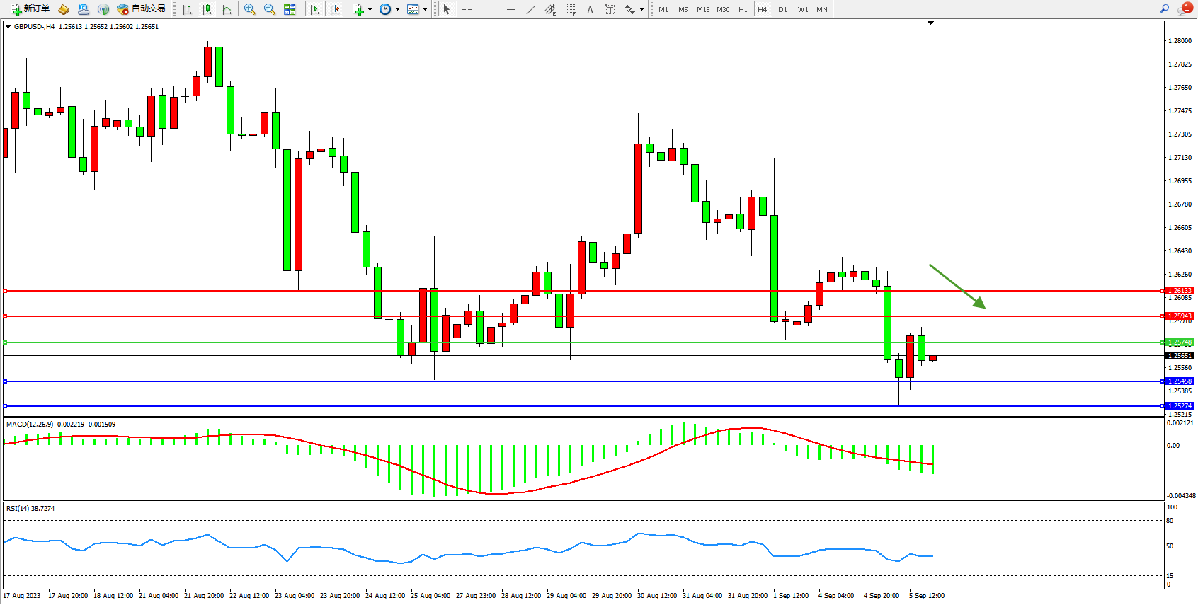 英镑美元GBPUSD ——4小时K线图显示:
