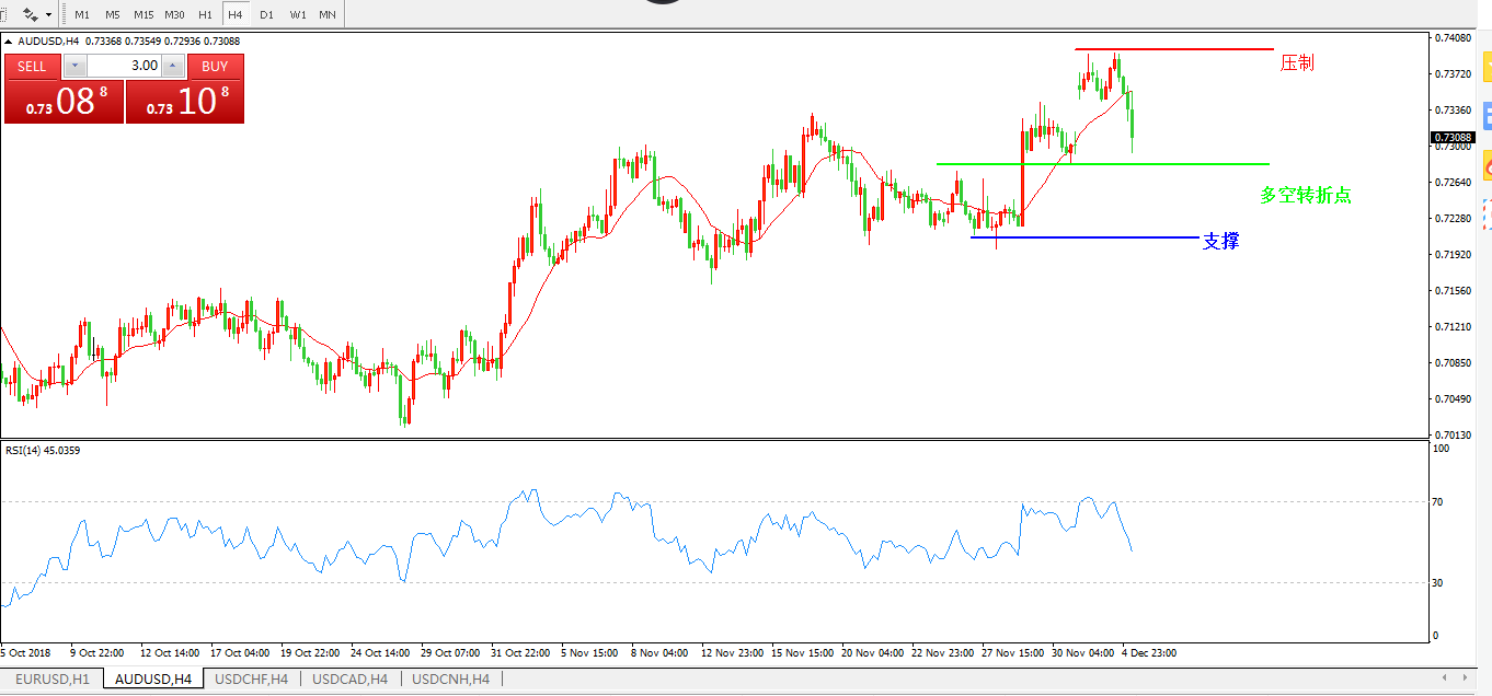 澳元兑美元AUDUSD4小时图:
