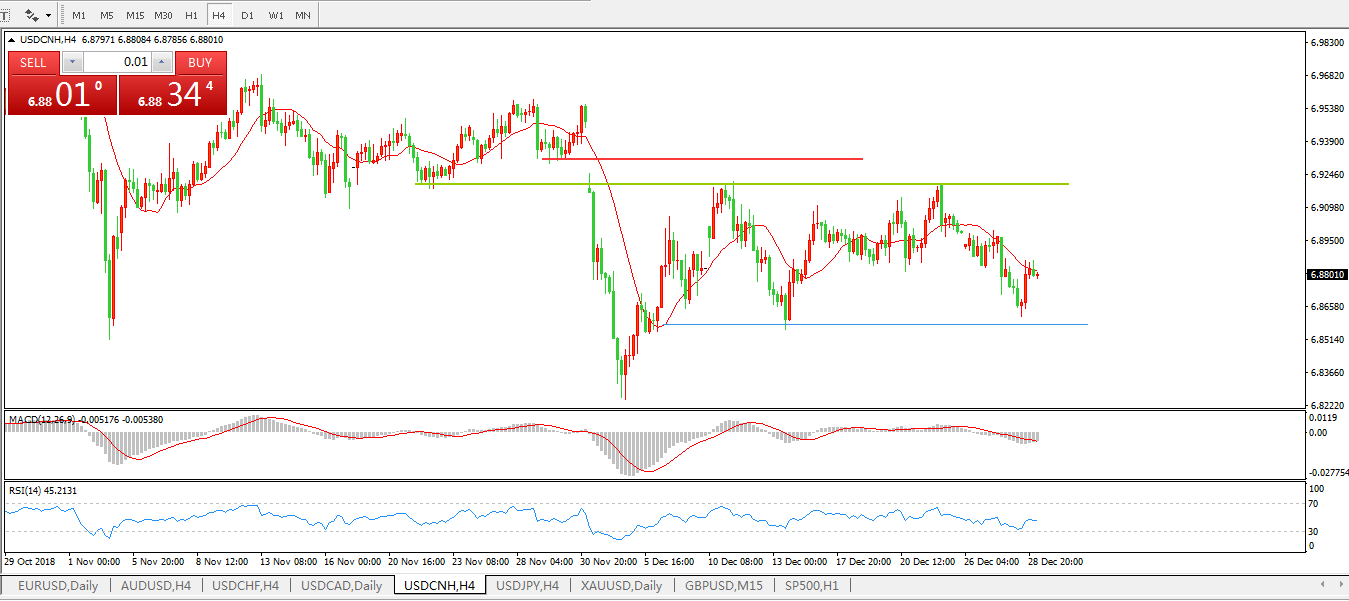 美元兑人民币USDCNH4小时图:
