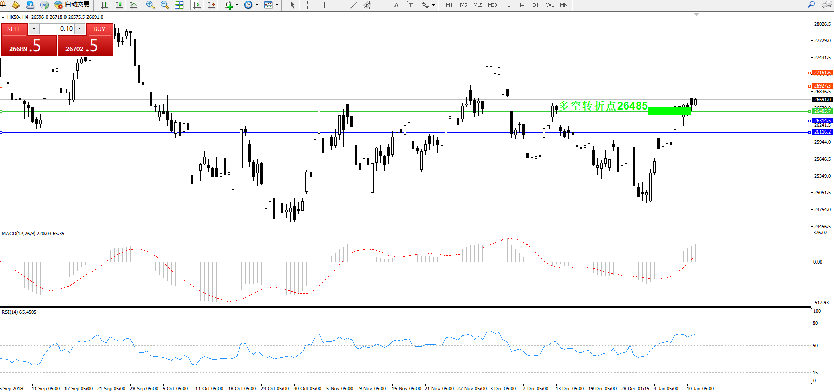 交易策略:26485上方看涨,目标26927、27161