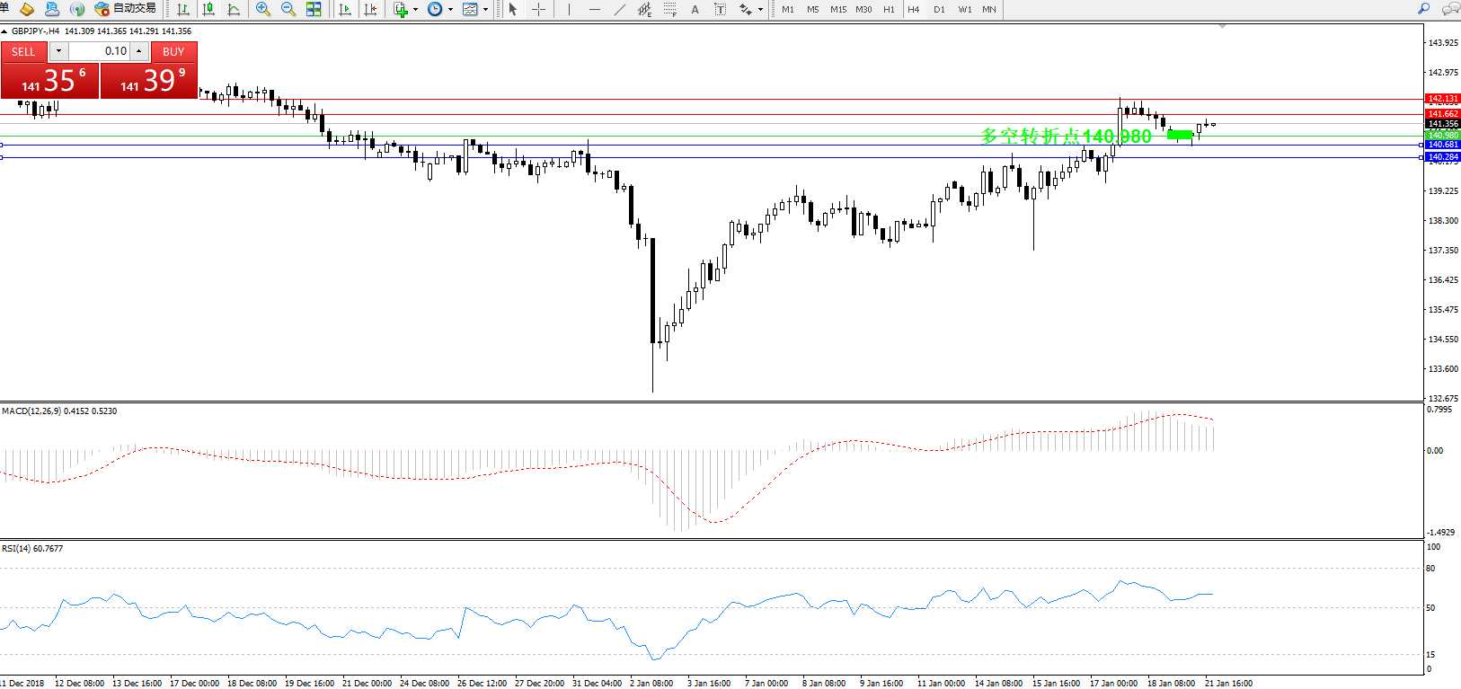交易策略:140.980上方看涨,目标141.662142.131
