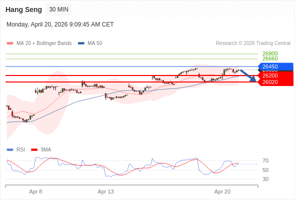 在 26450 之下,看跌,目标价位为 26200 ,然后为 26020 。