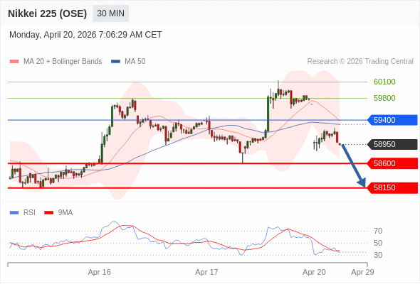在 59400 之下,看跌,目标价位为 58600 ,然后为 58150 。