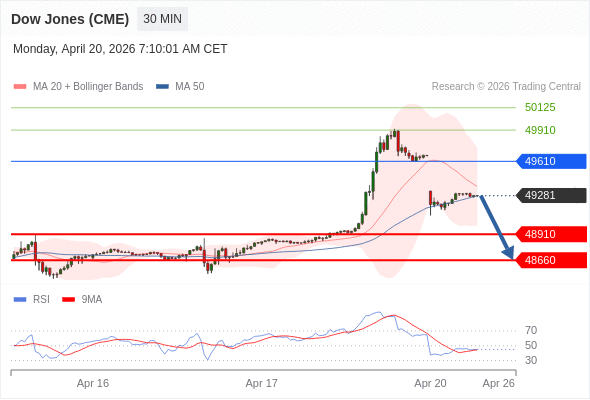在 49610 之下,看跌,目标价位为 48910 ,然后为 48660 。