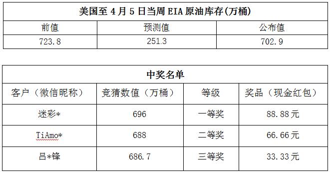 2019年4月第2期“EIA大竞猜”活动中奖公告