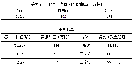 2019年5月第3期“EIA大竞猜”活动中奖公告