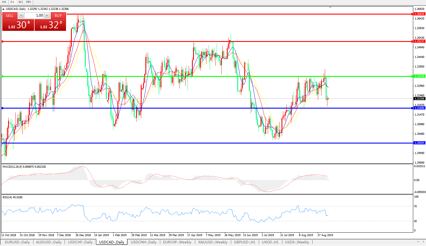 支撑位:1.3180 1.3000