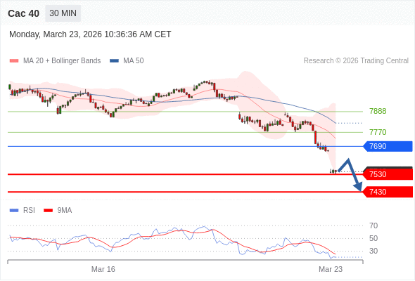 在 7690 之下,看跌,目标价位为 7530 ,然后为 7430 。