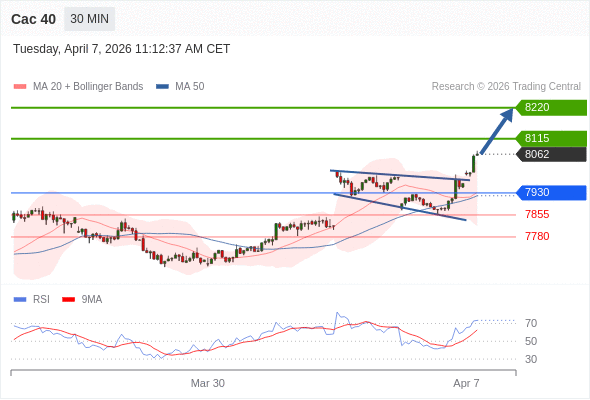 Cac 40 当日内: 在7930之上,看涨。