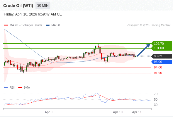 在 96.00 之上,看涨,目标价位为 101.00 ,然后为 102.70 。