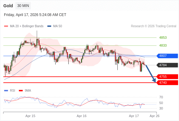 在 4807 之下,看跌,目标价位为 4755 ,然后为 4740 。