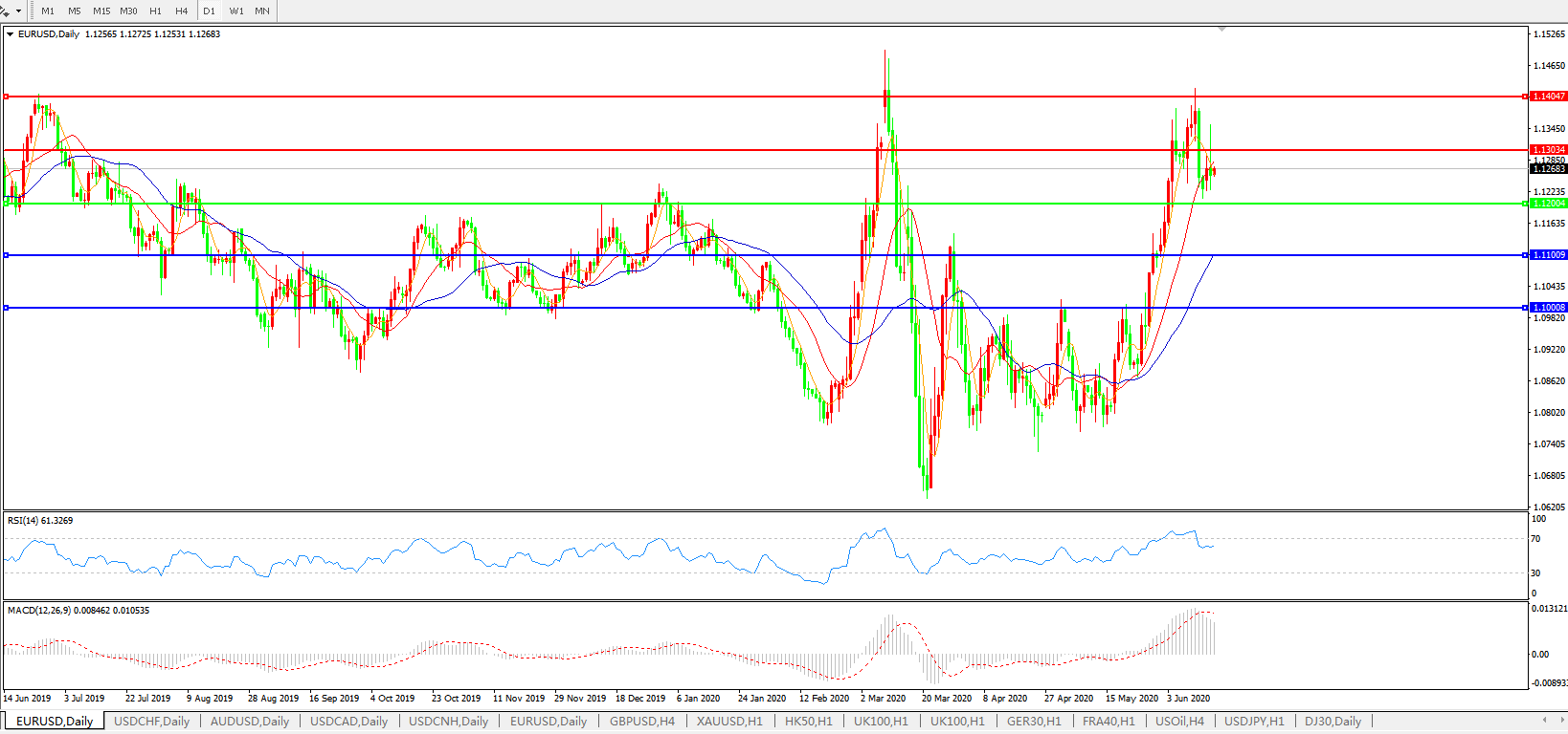 交易策略:1.1200上方看涨,目标1.1300、1.1400