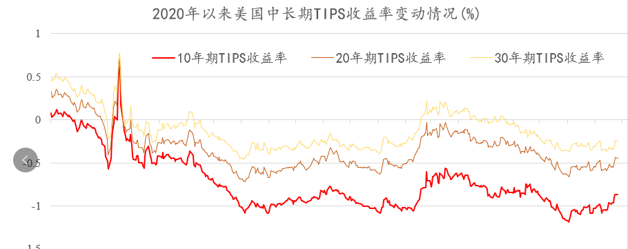 TIPS收益率,通常被视为美元的真实利率,而10年期、20年期和30年期的抗通胀国债,自然就被视为美元中长期真实利率。在黄金价格的每一次变动中,抗通胀国债收益率变动,都是金银价格下跌背后的真正动力,包括这两天——TIPS收益率的抬升,带来了金价下跌。