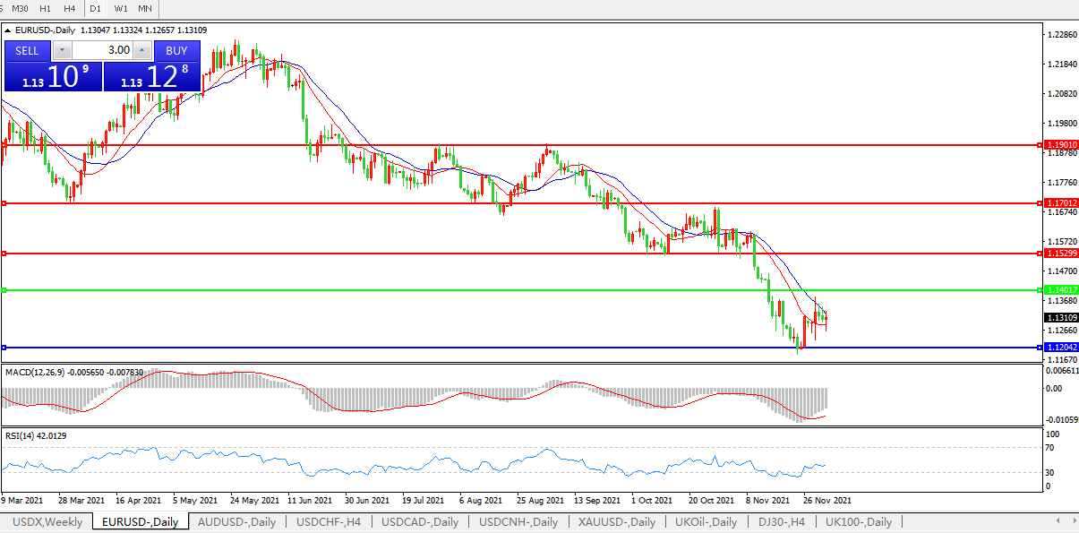 交易策略:1.1400下方看跌,目标1.1200、1.1000