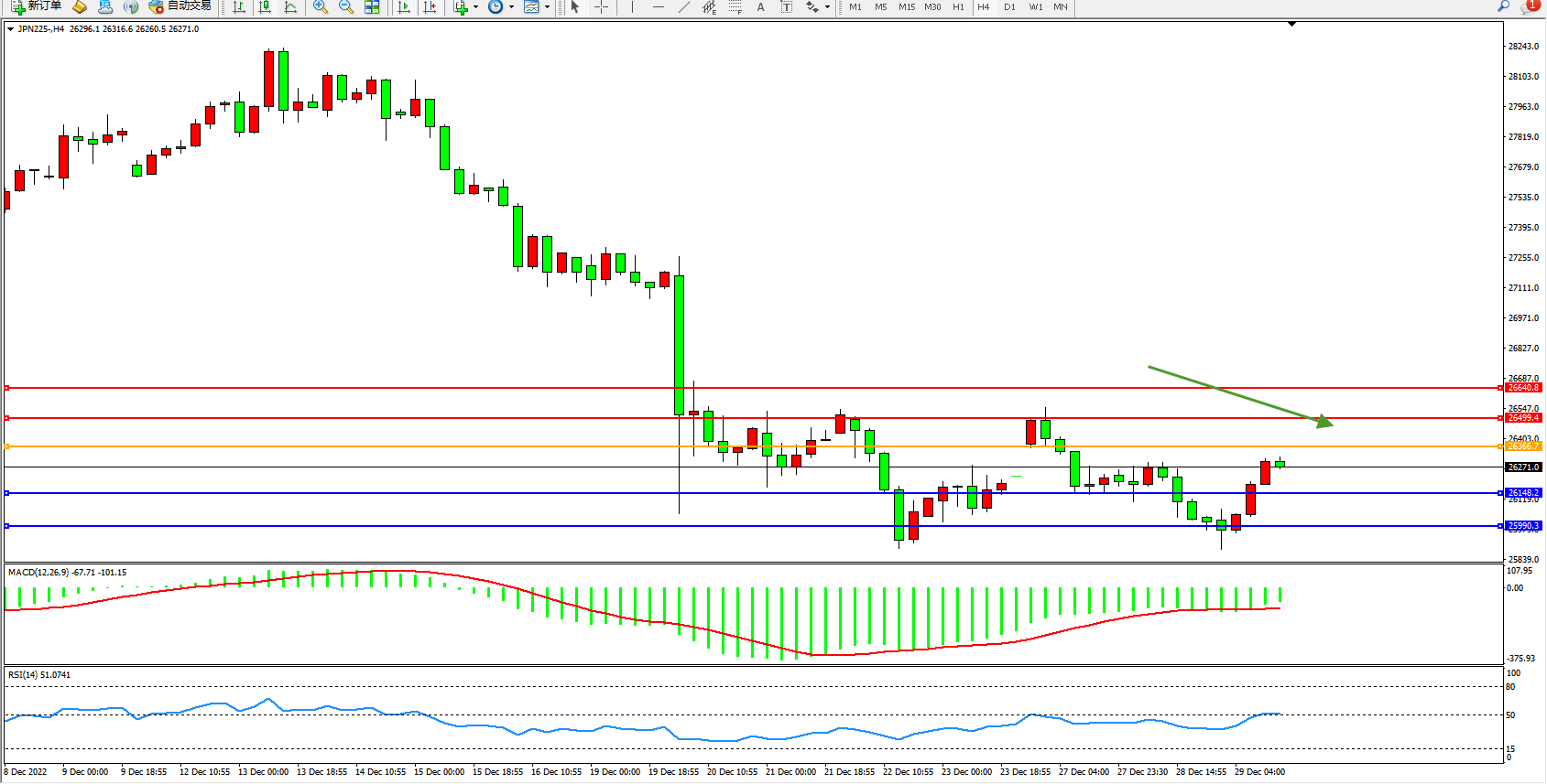 日经指数JPN225——4小时K线图显示: