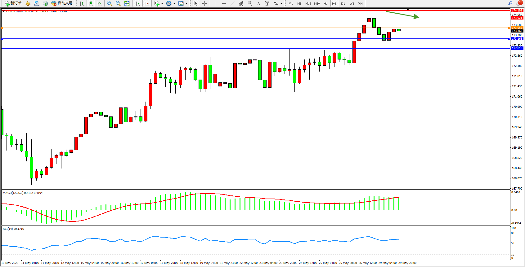 英镑兑日圆维持173.463附近震荡,英国利率已经上升至16年来最高的4.50%,现在预计今年年底将达到5.50%,这与一周前相比出现了明显的转变,当时货币市场显示交易商预计利率到11月将达到4.80%的峰值。
