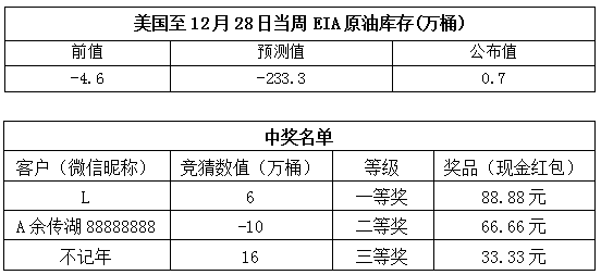 2019年1月第1次“EIA大竞猜”活动的中奖结果已出,获奖信息如下: